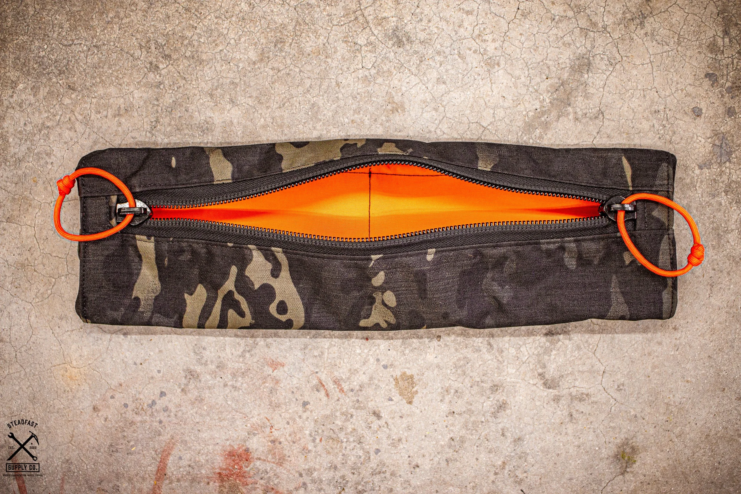 Our LMP (Long Modular Pocket) fits on the flap of the MTS (Modular Tool System). The LMP is a pleated design with bellow sewn into the pocket. Its unique design allows for use when laid on horizontal surfaces and from vertical surfaces, when in a pack, our MTS, or a seat back storage System.